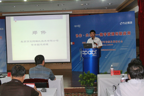 方正阿帕比常務(wù)副總經(jīng)理鄭偉在研討會(huì)上發(fā)言