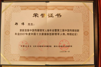 方正阿帕比常務(wù)副總經(jīng)理鄭偉榮獲“2007年度中國(guó)十大新媒體創(chuàng)新領(lǐng)軍人物”獎(jiǎng)