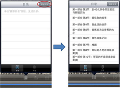 Apabi Reader還可以對TXT進行智能目錄提取,用戶只需點擊“提取目錄”按鈕,一般可以在幾秒鐘內(nèi)提取TXT文檔的目錄信息,并可以在不需要時清除該目錄。