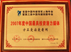 愛(ài)讀愛(ài)看網(wǎng)榮獲“2007年度中國(guó)最具投資潛力媒體”獎(jiǎng)