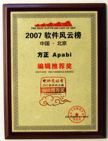 方正阿帕比喜獲軟件風(fēng)云榜"編輯推薦獎"(圖)