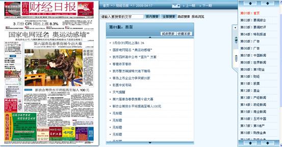 所有收錄報(bào)紙均提供在線原始版面,讀者可以通過版面圖定位并點(diǎn)擊進(jìn)入相關(guān)文章,也可以通過Apabi Reader將版面下載到本地,實(shí)現(xiàn)原版原式的報(bào)紙翻閱和原版打印。